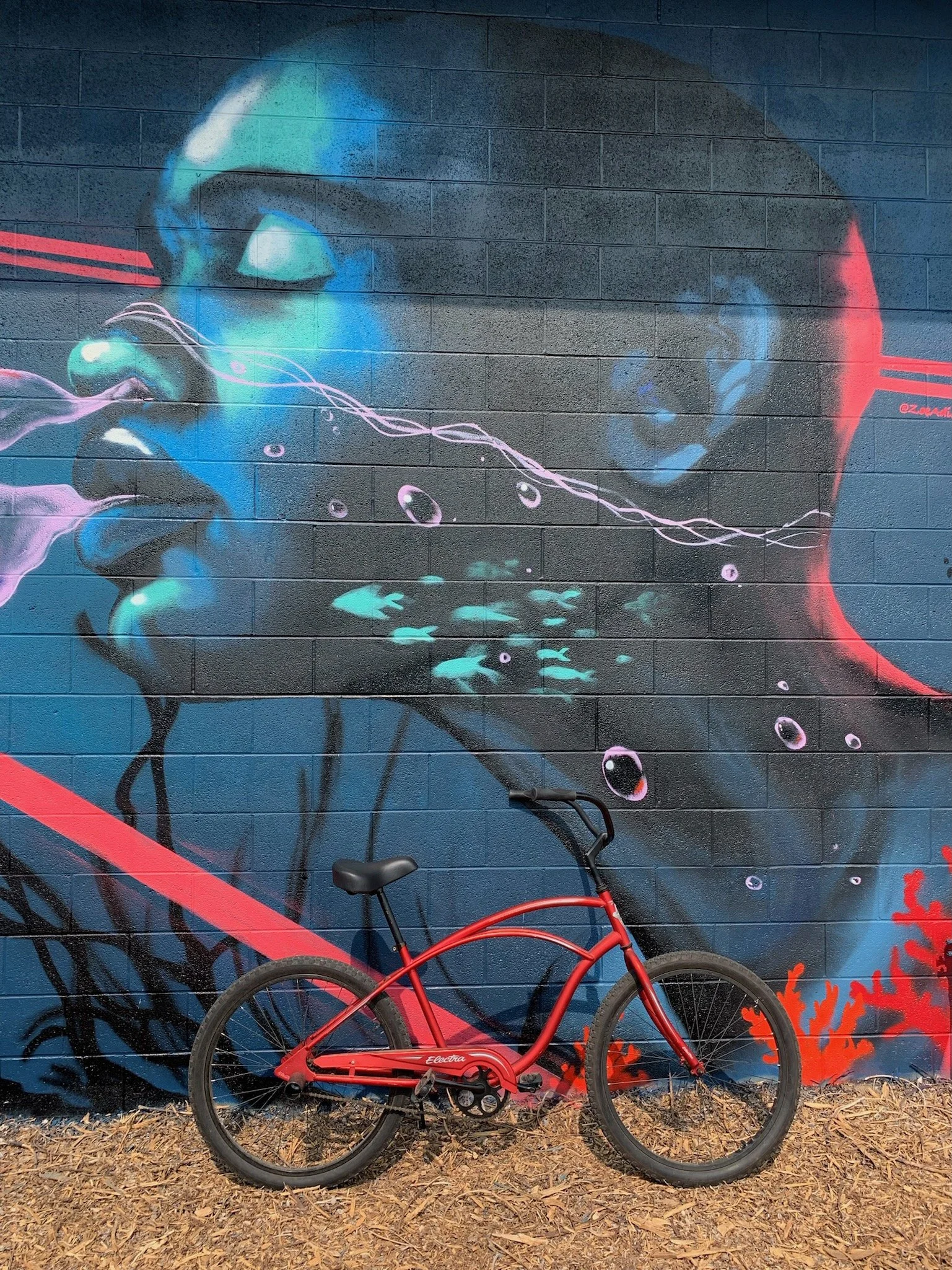Ride around the middle of Santa Cruz and you will find new places with new art. The skill and creativity in this mural, by Zoe Boston (@zoeadiahboston), is pretty amazing. It is great to see women artists helping women artists. Protect what you love.